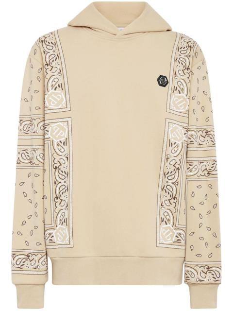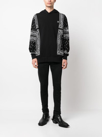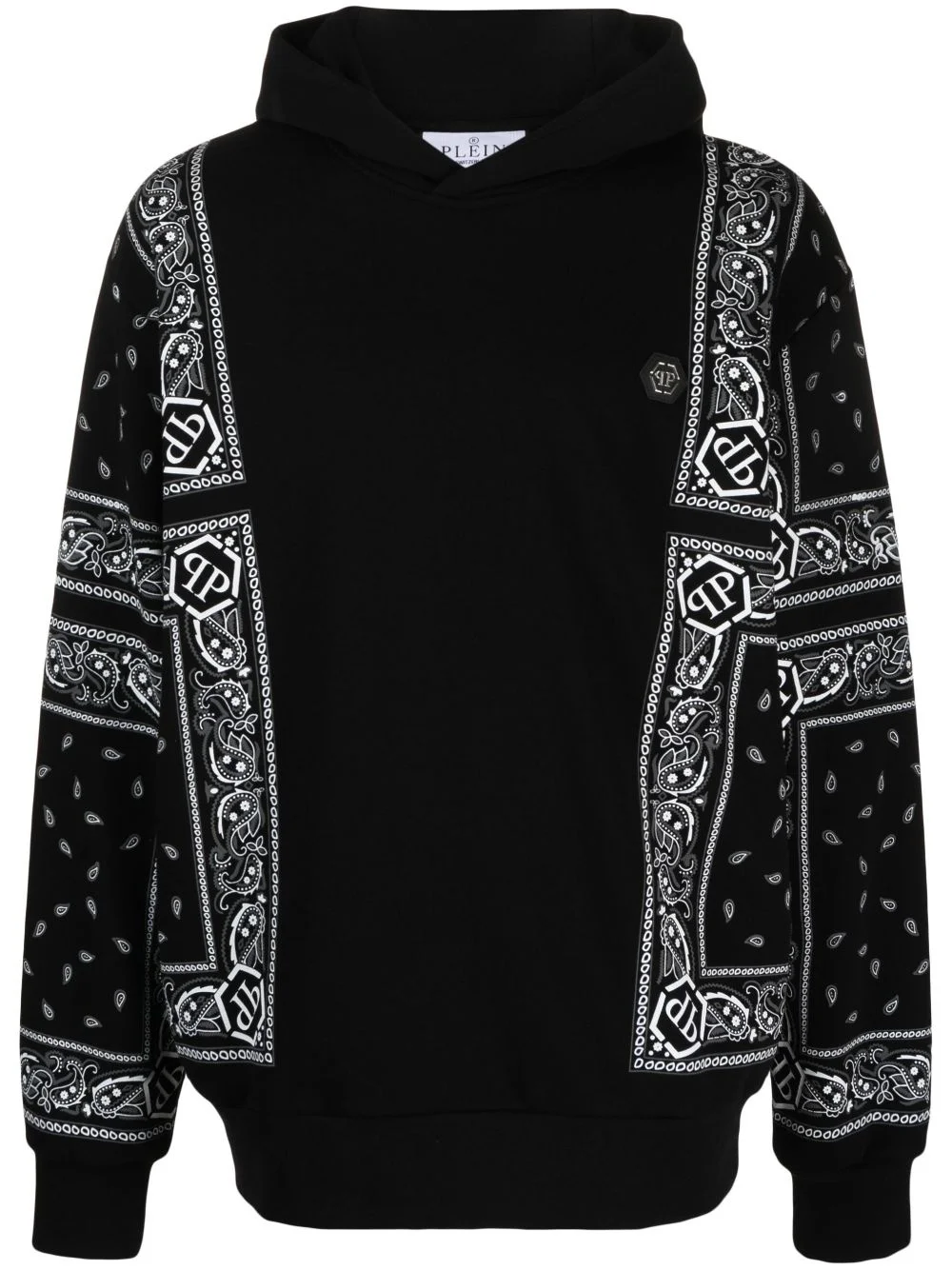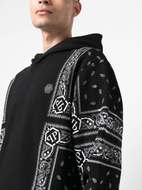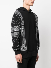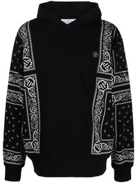 bandana-print long-sleeve hoodie Highlights - Black/white - Paisley print - Bandana print - Logo patch to the front - Slouchy hood - Long sleeves - Straight hem Imported Composition Polyester 95%, Elastane 5% Washing instructions Hand Wash