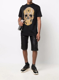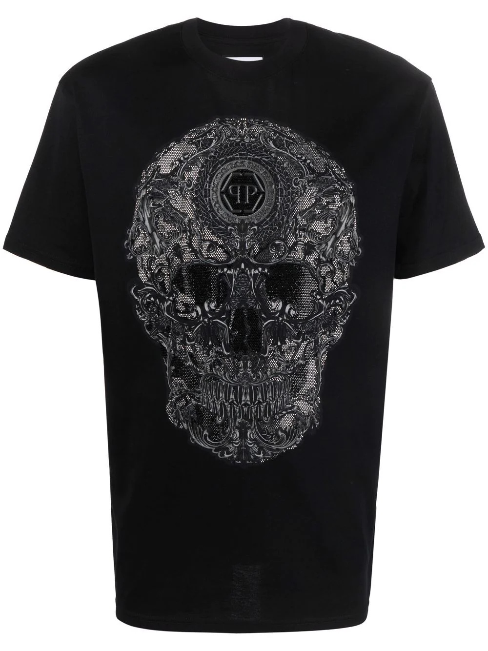 Black cotton baroque skull-print T-shirt from PHILIPP PLEIN featuring skull print, round neck, short sleeves and straight hem. When buying this unisex item, keep in mind that it is graded in standard men's sizing.. Highlights - Black - Cotton - Skull print - Round neck - Short sleeves - Straight hem - When buying this unisex item, keep in mind that it is graded in standard men's sizing. Imported Composition Cotton 100%