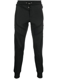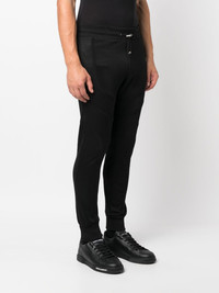 Basic drawstring track pants Highlights - Jet black - Stretch-design - Tonal logo plaque - Elasticated drawstring waistband - Two side inset pockets - Rear welt pocket - Elasticated ankles - Tapered leg Imported Composition Polyester 95%, Elastane 5% SIZE & FIT Model measurements Height 6 ft 2 in(1.89 m) Bust/Chest 38.97 in(99 cm) Hips 38.18 in(97 cm) Waist 32.28 in(82 cm) FittingInformation Designed for a slim fit, offering a comfortable fit that sits just away from the leg Adjust this piece’s waistband to your preference using the drawstring Made from a midweight stretch fabric, this piece offers elasticity and flexibility when worn This piece fits true to size – take your usual size Washing instructions Hand Wash