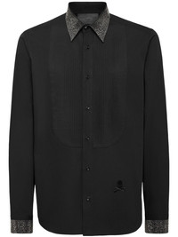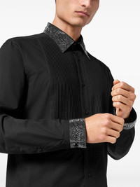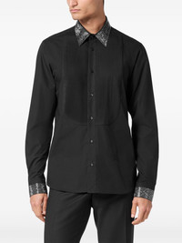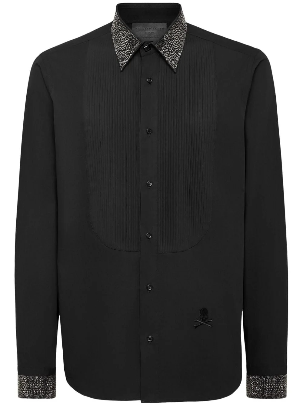 Black Tie shirt Highlights - Black - Cotton - Poplin texture - Front button fastening - Spread collar - Crystal embellishment - Pleat detailing - Embroidered logo to the side - Long sleeves - Buttoned cuffs - Rear curved hem Made in Italy Composition Cotton 100%