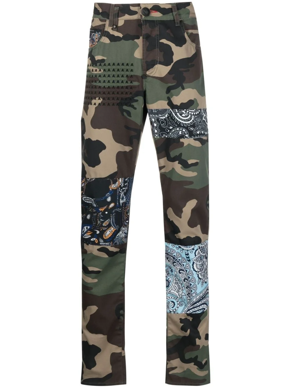 camouflage-print straight-leg jeans Highlights - Khaki - Cotton - Denim - Camouflage pattern - Patchwork detailing - Paisley print - Belt loops - Front button fastening - High-waisted - Straight leg - Classic five pockets Made in Italy Composition Cotton 100% SIZE & FIT Model measurements Height 6 ft 1 in(1.85 m) Bust/Chest 31.88 in(81 cm) Hips 33.07 in(84 cm) Waist 26.77 in(68 cm) FittingInformation Designed for a slim fit, these jeans offer a comfortable fit that sits just away from the leg Sturdy and hard-wearing, this denim piece offers no stretch This piece fits true to size – take your usual size Washing instructions Dry Clean Only