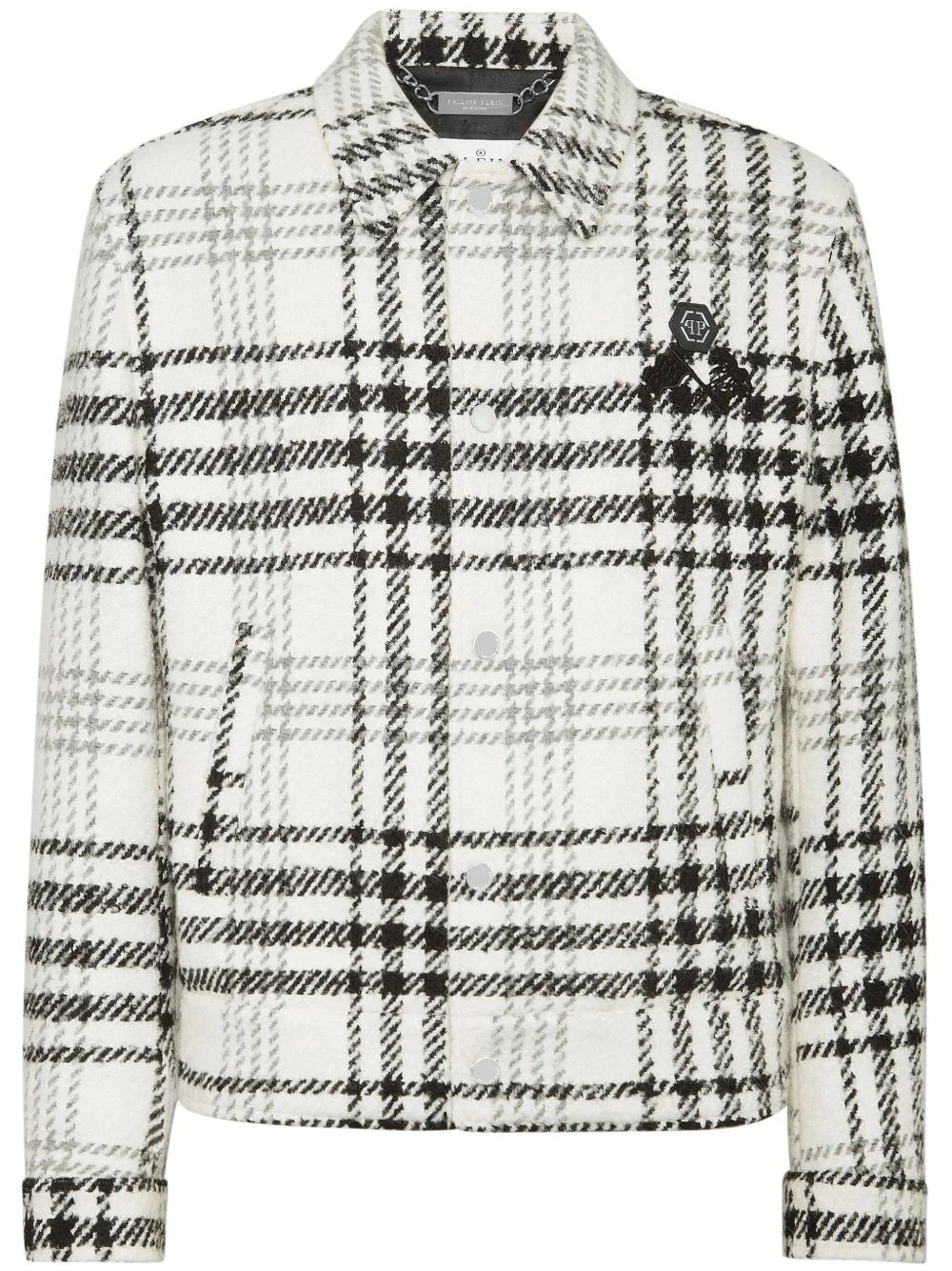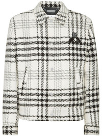 checked jacket Highlights - White - Front button fastening - Two front welt pockets - Buttoned cuffs - Embroidered logo to the rear Made in Italy Composition Outer: Acrylic 38%, Polyester 31%, Wool 20%, Alpaca 11% Lining: Viscose 51%, Acetate 49%
