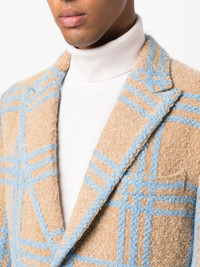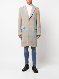 checked single-breasted coat Highlights - Beige/light blue - Check pattern - Peak lapels - Front button fastening - Long sleeves - Buttoned cuffs - Jetted chest pocket - Two side flap pockets - Central rear vent - Knee-length Made in Italy Composition Acrylic 42%, Polyester 25%, Wool 23%, Alpaca Wool 10% SIZE & FIT Model measurements Height 6 ft 2 in(1.88 m) Bust/Chest 36.61 in(93 cm) Hips 37.79 in(96 cm) Waist 28.74 in(73 cm) Washing instructions Dry Clean Only