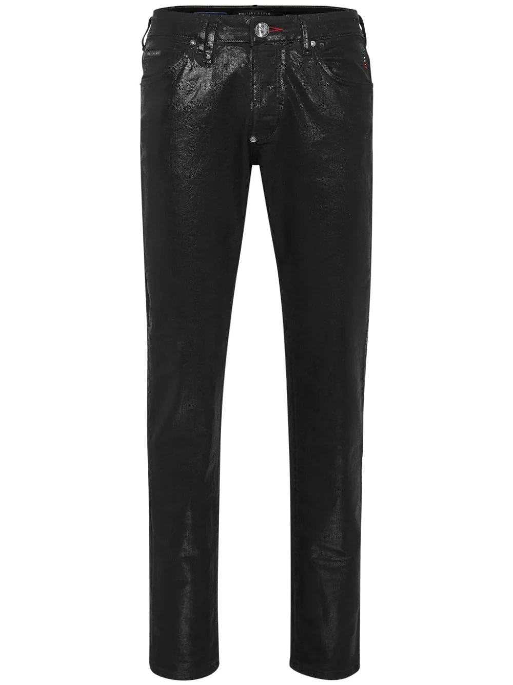 coated-finish straight-leg jeans Highlights - Black - Cotton - Denim - Coated finish - Applique logo - Mid-rise - Concealed fly and button fastening - Belt loops - Straight leg - Classic five pockets Imported Composition Cotton 100%