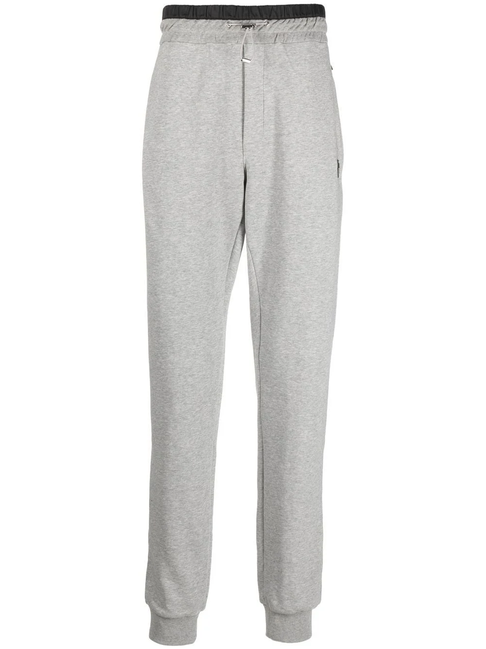 contrasting-waistband sweatpants grey/black cotton jersey knit logo plaque contrasting waistband drawstring fastening waist two side zip-fastening pockets straight leg elasticated ankles Imported Composition Cotton 100% SIZE & FIT Model measurements Height 6 ft 0 in(1.84 m) Bust/Chest 35.82 in(91 cm) Hips 37 in(94 cm) Waist 28.34 in(72 cm) FittingInformation This piece fits true to size. We recommend you get your regular size Cut for a slim fit Made with a mid-weight fabric Washing instructions Hand Wash