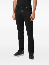 cotton jeans Highlights - Black - Front button fastening - Classic five pockets - Logo patch to the front - Tapered leg Imported Composition Outer: Cotton 99%, Elastane 1% Lining: Polyester 65%, Cotton 35%