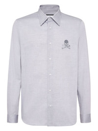 cotton shirt Highlights - Light grey - Front button fastening - Skull print - Straight-point collar - Long sleeves Made in Italy Composition Cotton 100%