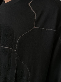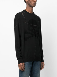 cracked-effect wool jumper black wool knitted construction cracked effect logo patch to the rear ribbed edge crew neck long sleeves straight hem Made in Italy Composition Wool 100% SIZE & FIT Model measurements Height 6 ft 1 in(1.85 m) Bust/Chest 31.88 in(81 cm) Hips 33.07 in(84 cm) Waist 26.77 in(68 cm) FittingInformation This piece fits true to size. We recommend you get your regular size Cut for a relaxed fit Made with a mid-weight fabric Washing instructions Hand Wash