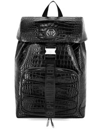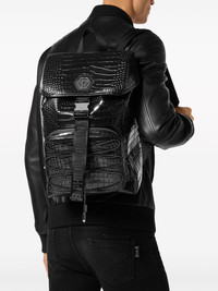 crocodile-embossed leather backpack Highlights - Black - Calf leather - Applique logo - Embossed crocodile effect - Adjustable shoulder straps - Single top handle - Foldover top - Buckle fastening - Front zip-fastening pocket - Main compartment Made in Italy Composition Outer: Calf Leather 100%