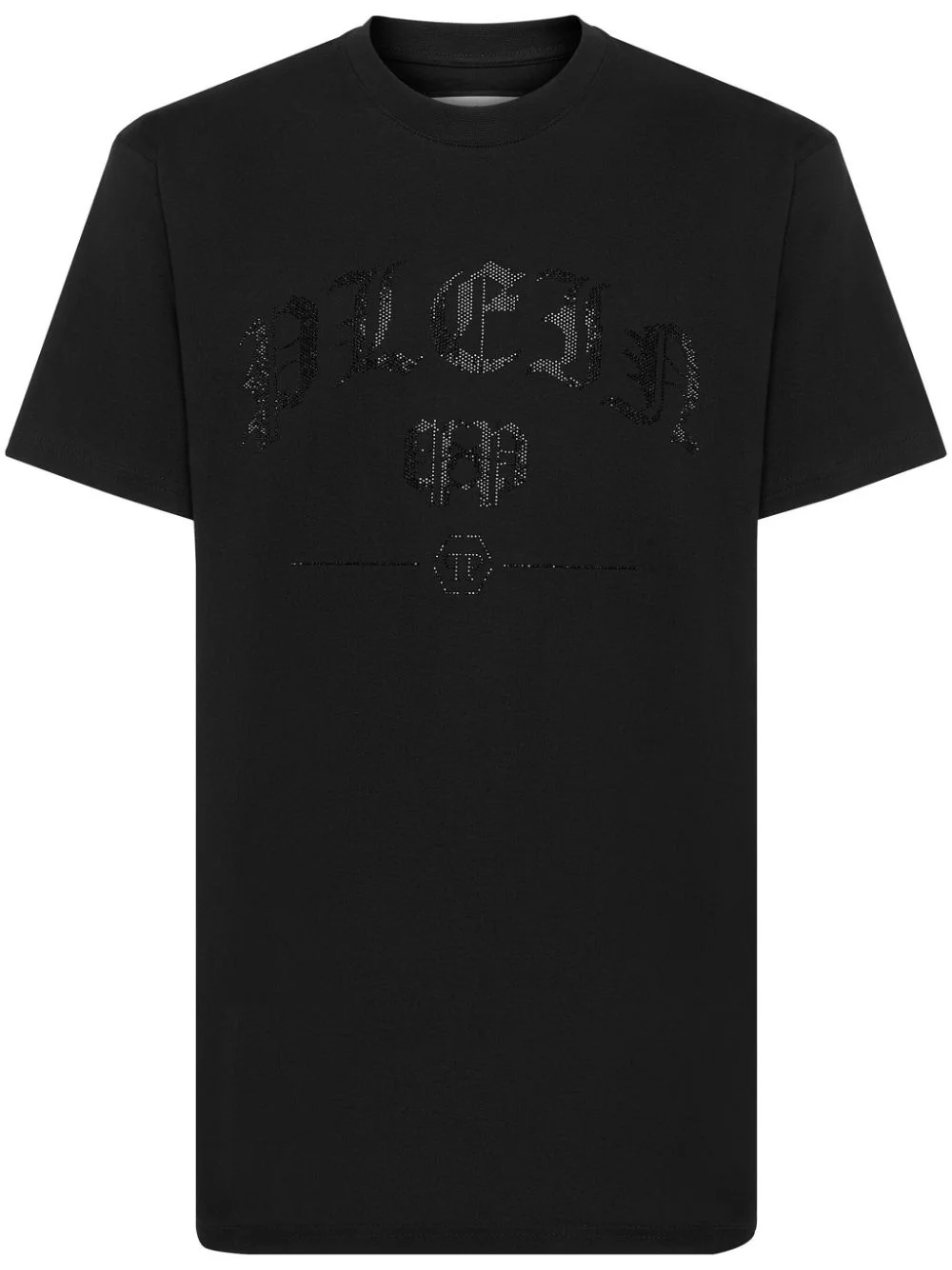 crystal-embellished cotton T-shirt Highlights - Jet black - Cotton - Jersey texture - Logo print to the front - Crystal embellishment - Applique logo - Mini logo tag - Crew neck - Short sleeves - Straight hem Imported Composition Cotton 100%, Glass Fiber 100%