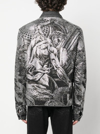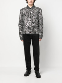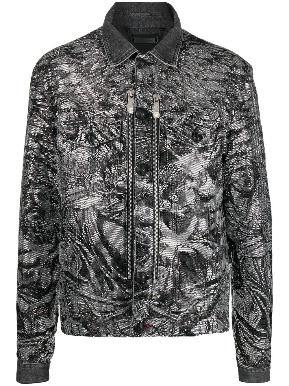 crystal-embellished jacket silver-tone crystal embellishment all-over graphic print classic collar front button and zip fastening two button-fastening chest pockets silver-tone logo plaque full lining long sleeves Imported Composition Outer: Cotton 100%, Polyester 100% Lining: Polyester 65%, Cotton 35% SIZE & FIT Model measurements Height 6 ft 1 in(1.86 m) Bust/Chest 34.64 in(88 cm) Hips 35.43 in(90 cm) Waist 27.55 in(70 cm) FittingInformation This piece fits true to size. We recommend you get your regular size Cut for a loose fit Made with a heavyweight stretch fabric Washing instructions Dry Clean Only