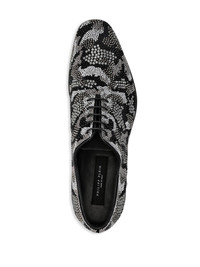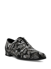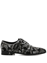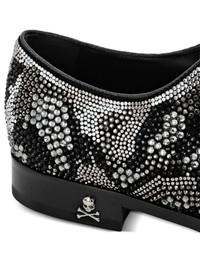 crystal-embellished leather Oxford shoes Highlights - Black - Leather - Camouflage pattern - Crystal embellishment - Skull stud detailing - Almond toe - Front lace-up fastening - Branded leather insole - Leather outsole Made in Italy Composition Lining: Calf Leather 100% Outer: Rhinestone 100% Sole: Calf Leather 100%