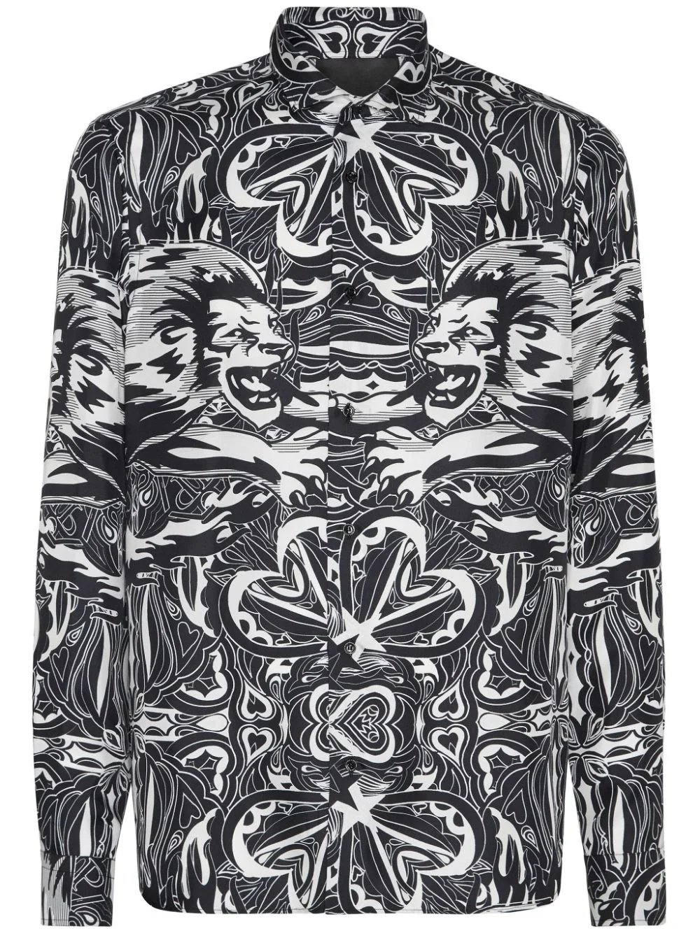 Dandy Lion Circus silk shirt Highlights - Black/white - Silk - All-over graphic print - Classic collar - Front button fastening - Long sleeves - Buttoned cuffs - Straight hem Made in Italy Composition Silk 100%
