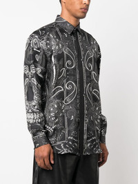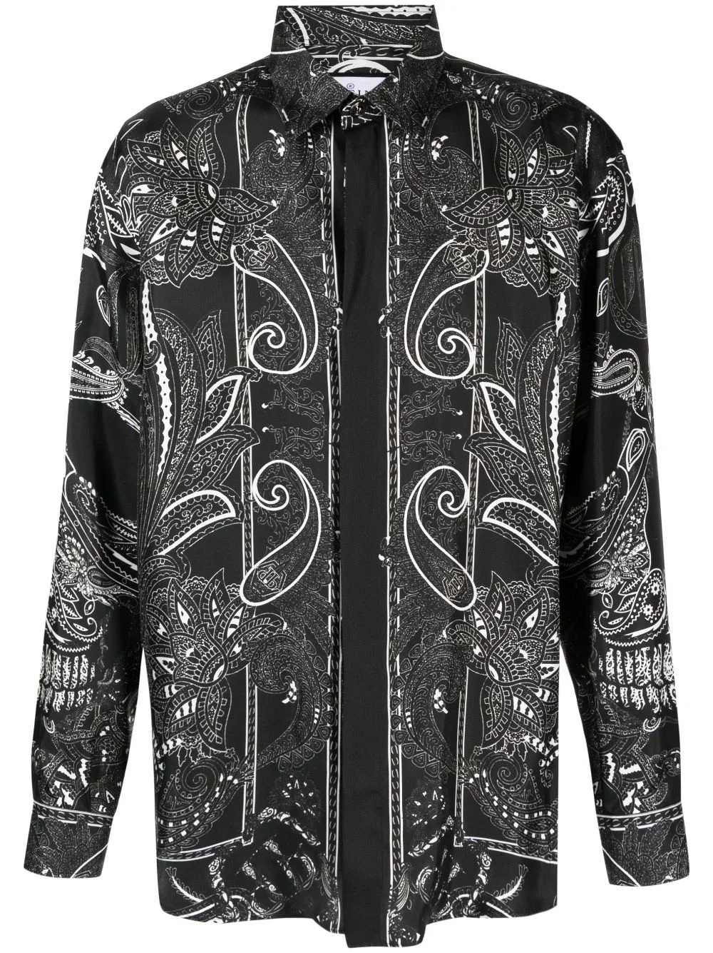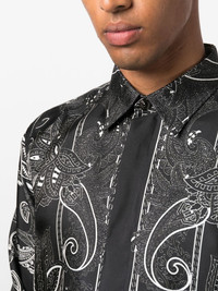 Dandy paisley-print silk shirt Highlights - Black/white - Silk - Paisley print - Skull print, and logo print to the rear - Classic collar - Concealed front button fastening - Long sleeves - Buttoned cuffs - Curved hem Made in Italy Composition Silk 100% SIZE & FIT Model measurements Height 6 ft 2 in(1.88 m) Bust/Chest 36.61 in(93 cm) Hips 37.79 in(96 cm) Waist 28.74 in(73 cm)