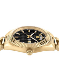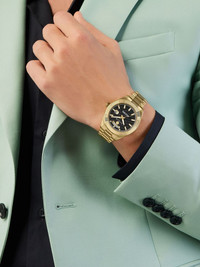 Date Superlative 42mm Philipp Plein's Date Superlative model gained its name from the date indication displayed on the dial. This function is seen here paired up with a day-window as well, enhancing the precision of the quartz-powered timepiece. Highlights - 42mm - Black - Gold-tone - Stainless steel - Round face - Guilloche dial - Geometric dial - Baton hands - Day-date display - Quartz movement - Fluted bezel - Screw-down crown - Adjustable fit - Folding clasp - This item comes with a standard one-year warranty from the boutique. Imported Composition stainless steel 100%