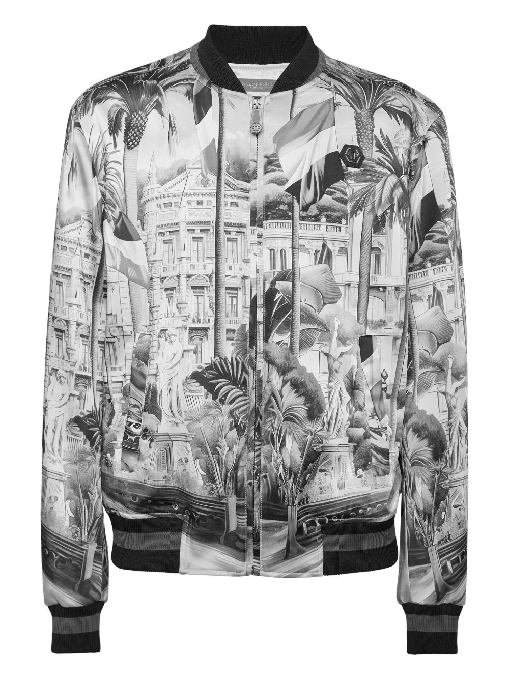 D'azur bomber jacket Highlights - Black - Front zip fastening - Baseball collar - All-over graphic print - Two side slit pockets Made in Italy Composition Outer: Polyester 97%, Elastane 3% Lining: Polyester 100% Washing instructions Read Manufacturer Guidelines