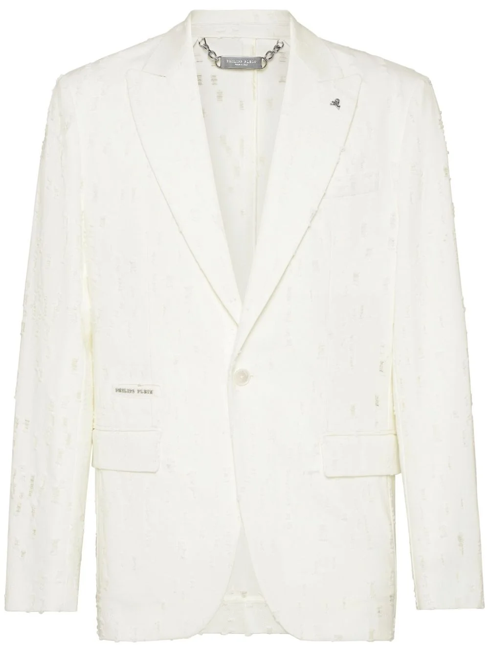 distressed blazer Highlights - White - Front button fastening - Two front flap pockets - Buttoned cuffs - Central rear vent Made In Italy Composition Lining: Viscose 51%, Acetate 49% Outer: Cotton 100%