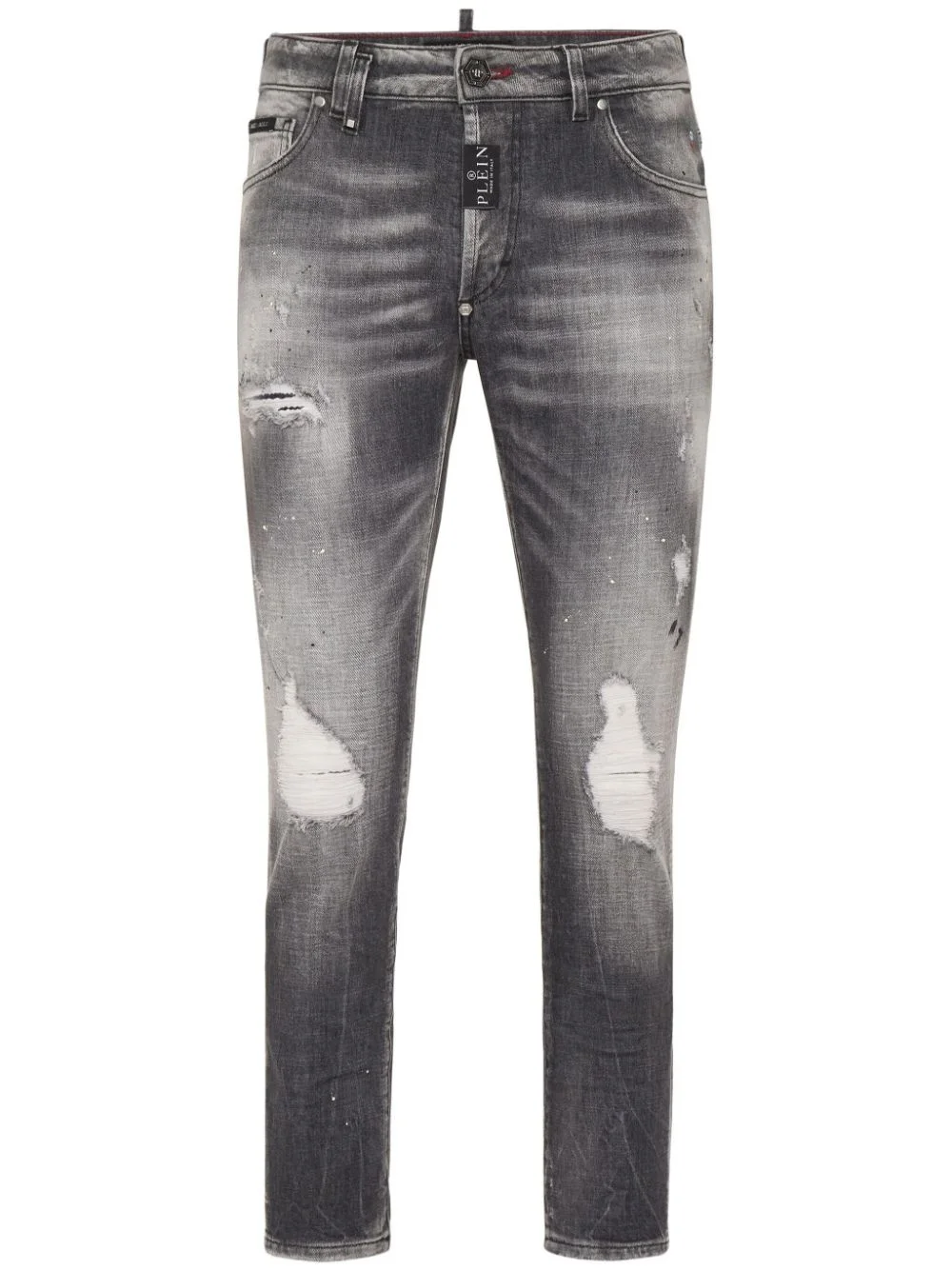 distressed cropped skinny jeans Highlights - Grey - Cotton blend - Denim - Logo patch to the rear - Distressed effect - Belt loops - Front button and zip fastening - Classic five pockets - Skinny cut - Cropped Made in Italy Composition Lining: Polyester 65%, Cotton 35% Outer: Cotton 99%, Elastane 1%