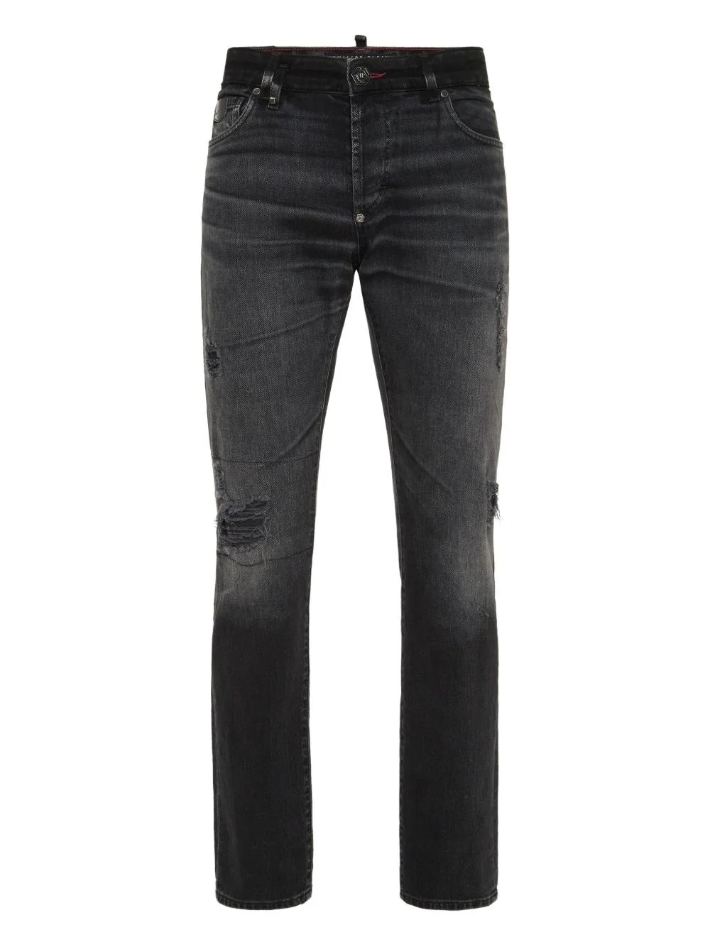 distressed-detail jeans Highlights - Black - Distressed detailing - Five-pockets design - Logo patch - Button fly - Belt loops Made in Italy Composition Cotton 100% Washing instructions Read Manufacturer Guidelines