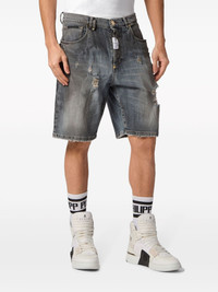 distressed-effect denim shorts Highlights - Taupe grey - Cotton - Washed denim - Distressed effect - Ripped detailing - Applique logo - Mid-rise - Concealed fly and button fastening - Belt loops - Straight leg - Classic five pockets - Knee-length - Raw-cut hem Made in Italy Composition Cotton 100%