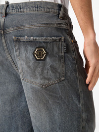 distressed-effect denim shorts