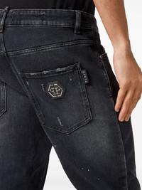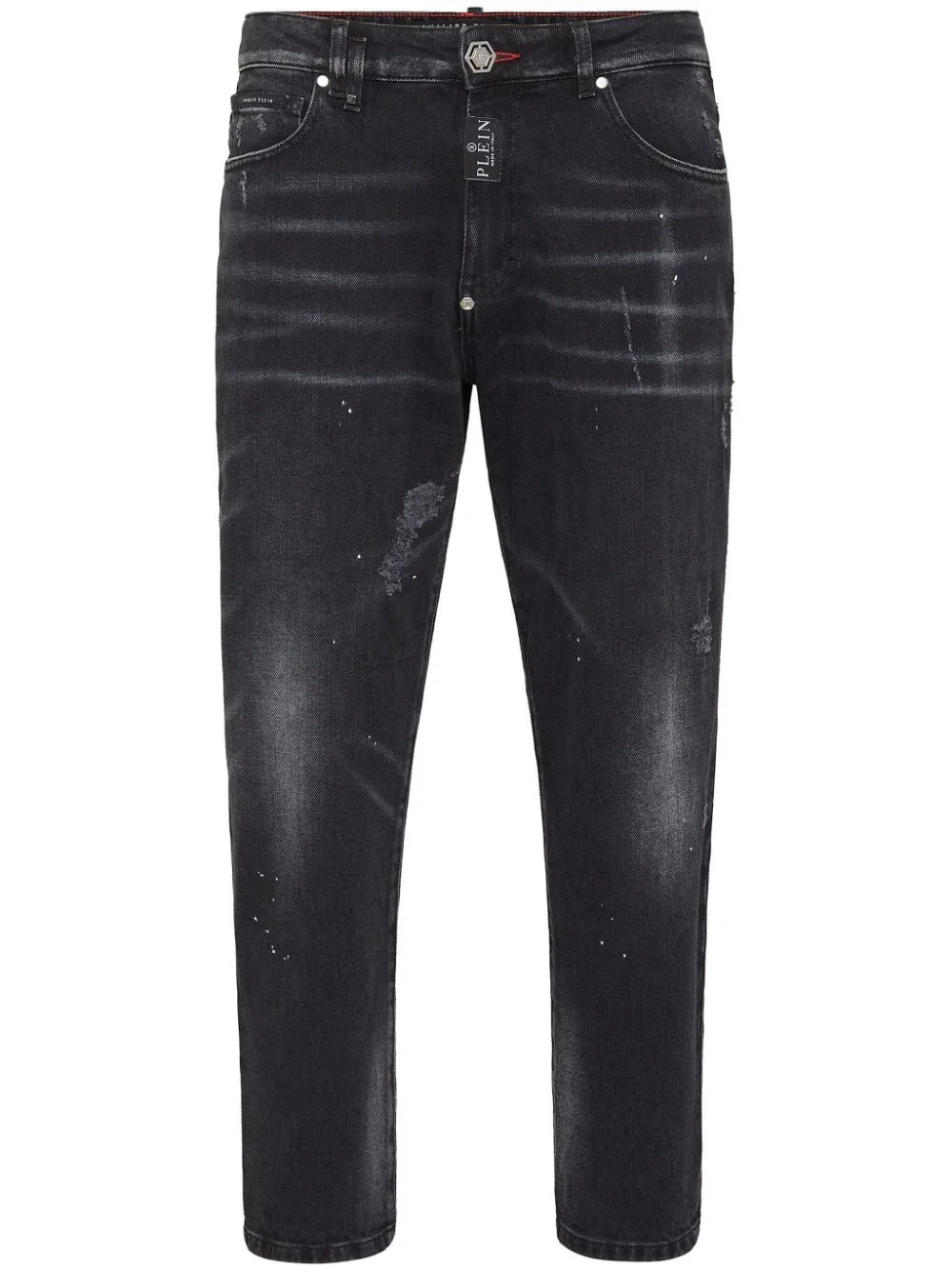 distressed-effect straight-leg jeans Highlights - Black - Stretch-cotton - Washed denim - Distressed effect - Ripped detailing - Whiskering effect - Applique logo - Mid-rise - Concealed fly and button fastening - Belt loops - Straight leg - Classic five pockets Made in Italy Composition Lining: Polyester 65%, Cotton 35% Outer: Cotton 98%, Elastane 2%
