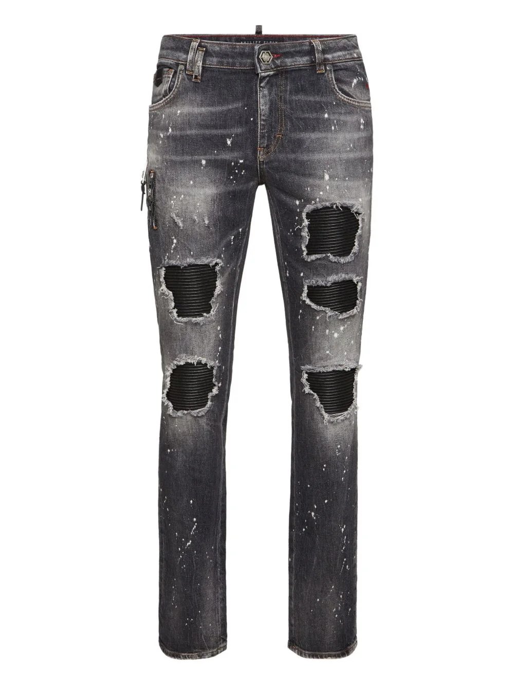 distressed jeans Highlights - Black - Ripped detailing - Paint splatter finish - Zip pocket - Five-pocket design Made in Italy Composition Outer: Cotton 99%, Polyester 50%, Polyurethane 50%, Elastane 1% Lining: Polyester 65%, Cotton 35% Washing instructions Read Manufacturer Guidelines