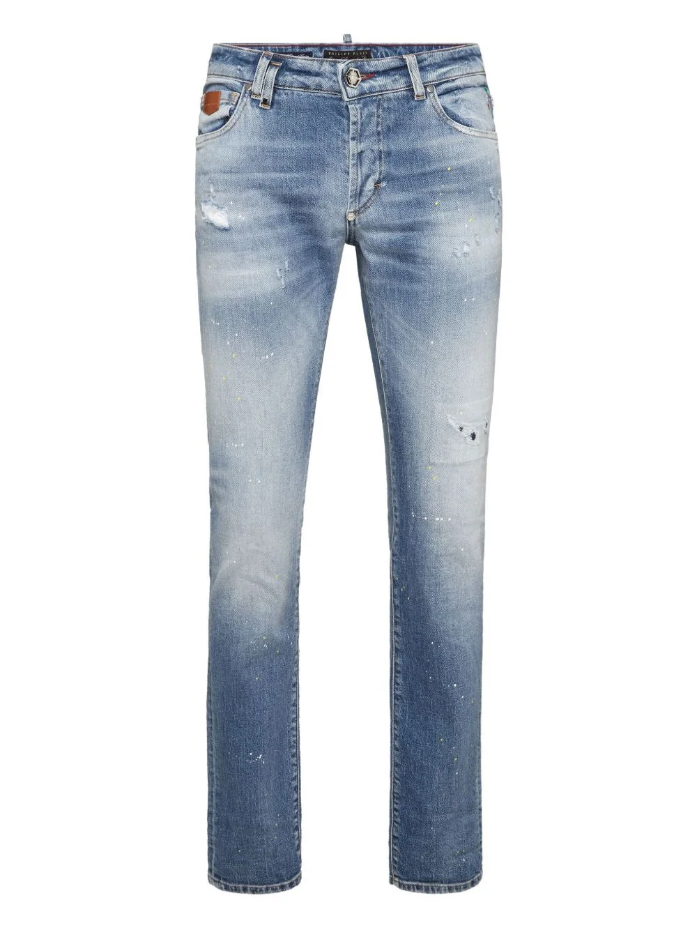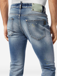 distressed jeans Highlights - Light blue - Scattered paint splatter - Five-pocket design - Logo patch at back - Zip fly fastening Made in Italy Composition Outer: Cotton 99%, Elastane 1% Lining: Polyester 65%, Cotton 35% Washing instructions Read Manufacturer Guidelines