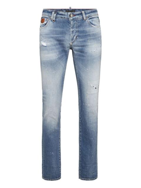 distressed paint-splattered jeans Highlights - Black - Paint splatter detailing - Five-pocket design - Logo patch at rear Made in Italy Composition Outer: Cotton 99%, Elastane 1% Lining: Polyester 65%, Cotton 35% Washing instructions Read Manufacturer Guidelines