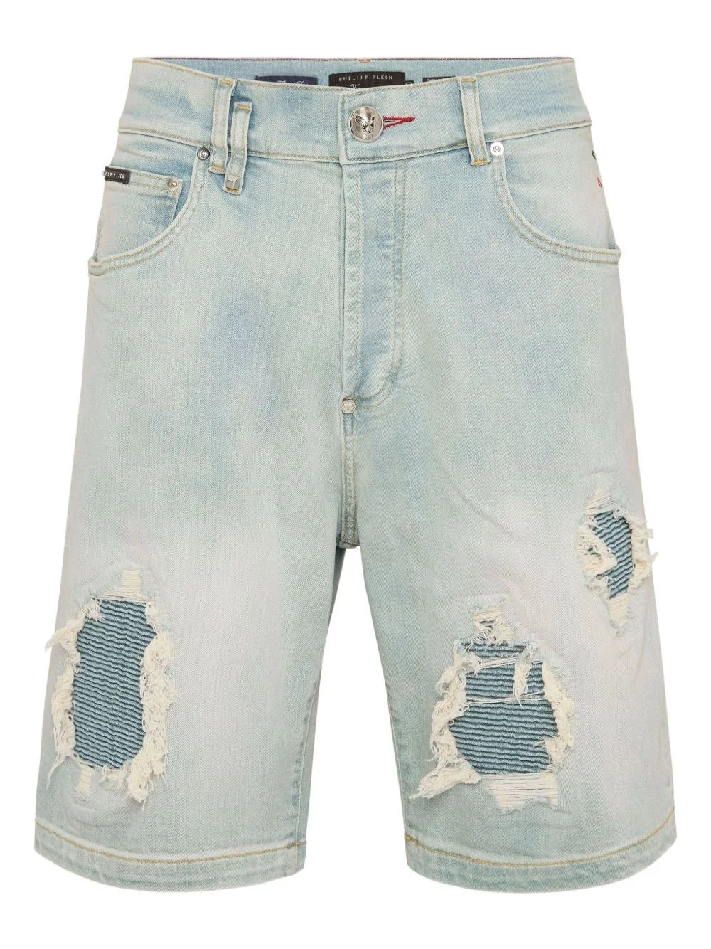 distressed shorts Highlights - Light blue - Front button fastening - Belt loops - Classic five pockets - Logo patch to the rear Imported Composition Cotton 98%, Elastane 2%