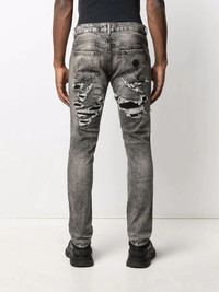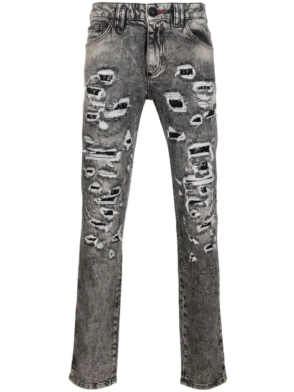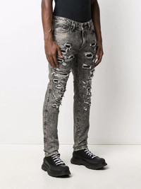 mesh ripped-detail jeans Highlights - Grey - Cotton - Distressed effect - Faded effect - Belt loops - Front button and zip fastening - Classic five pockets Imported Composition Outer: Cotton 98%, Elastane 2% Lining: Polyester 65%, Cotton 35% SIZE & FIT Model measurements Height 6 ft 1 in(1.86 m) Bust/Chest 36.61 in(93 cm) Hips 36.61 in(93 cm) Waist 29.92 in(76 cm) FittingInformation This piece fits true to size. We recommend you get your regular size Cut for a slim fit Made with a mid-weight stretch fabric Washing instructions Dry Clean Only