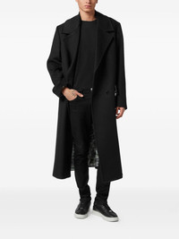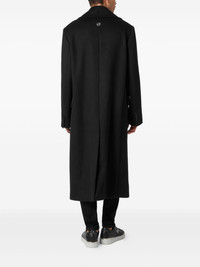 double-breasted coat Highlights - Black - Two side flap pockets - Central rear vent - Logo plaque - Long sleeves Made in Italy Composition Outer: Virgin Wool 70%, Polyamide 20%, Cashmere 10% Lining: Polyester 100%