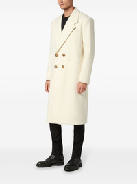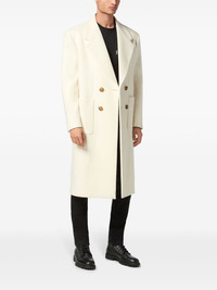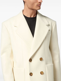 double-breasted peacoat Highlights - White - Double-breasted button fastening - Chest welt pocket - Two front patch pockets - Buttoned cuffs - Central rear vent Made in Italy Composition Outer: Virgin Wool 70%, Polyamide 20%, Cashmere 10% Lining: Polyester 100%