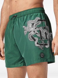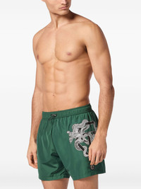 dragon-print swim shorts Highlights - Deep green - Elasticated waist - Drawstring fastening - Contrasting dragon print - Side pockets - Rear pocket - Logo patch - Be mindful to try on swimwear over your own garments. Imported Composition Fabric 100%