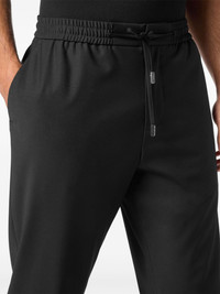drawstring-waist track pants Highlights - Black - Virgin wool blend - Elasticated drawstring waistband - Two side inset pockets - Rear jetted pocket - Elasticated ankles Made in Italy Composition Lining: Polyester 65%, Cotton 35% Outer: Polyester 53%, Virgin Wool 43%, Elastane 4%