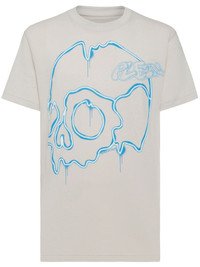 Dripping Skull graphic-print T-shirt Highlights - Beige/blue - Cotton - Jersey texture - Skull print to the front - Logo patch to the rear - Crew neck - Short sleeves - Straight hem Made in Italy Composition Cotton 100% Washing instructions Read Manufacturer Guidelines