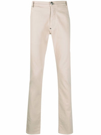 elasticated-waist straight-leg jeans Highlights - Beige - Slim cut - Logo plaque - Elasticated waistband - Belt loops - Front button and zip fastening - Classic five pockets Imported Composition Outer: Cotton 98%, Spandex/Elastane 2% Lining: Polyester 65%, Cotton 35% SIZE & FIT Model measurements Height 6 ft 1 in(1.86 m) Bust/Chest 35.43 in(90 cm) Hips 35.43 in(90 cm) Waist 29.92 in(76 cm) FittingInformation This piece fits large – you might want to get one size down Cut for a slim fit Made with a mid-weight stretch fabric Washing instructions Dry Clean Only
