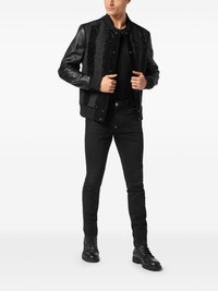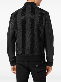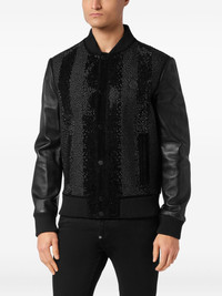 embellished bomber jacket Highlights - Black - Beaded detailing - Button fastening - Ribbed collar - Ribbed cuffs - Side pockets - Leather sleeves - Relaxed silhouette Imported Composition Fabric 100%
