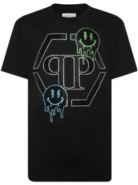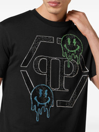 embellished-smile cotton T-shirt Highlights - Black - Cotton - Rhinestone embellishment - Smiley face motif - Monogram print - Crew neck - Short sleeves - Straight hem Imported Composition Cotton 100%, Glass Fiber 100%