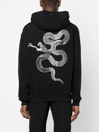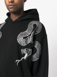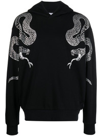 embellished snake-print detail hoodie jet black cotton ribbed detailing crystal embellishment snake-print classic hood long sleeves straight hem Imported Composition Cotton 100% SIZE & FIT Model measurements Height 6 ft 2 in(1.88 m) Bust/Chest 36.61 in(93 cm) Hips 35.82 in(91 cm) Waist 27.95 in(71 cm) FittingInformation This piece fits true to size. We recommend you get your regular size Cut for a relaxed fit Made with a mid-weight fabric Washing instructions Hand Wash