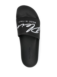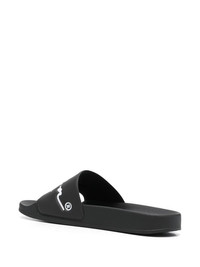 logo-print slides black/white logo print to the front open toe open back slip-on style flat sole Made in Italy Composition PVC 100% SIZE & FIT Measurement HEEL 0.98 in(2.5 cm) Sole height 0.59 in(1.5 cm)