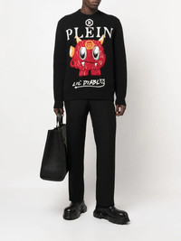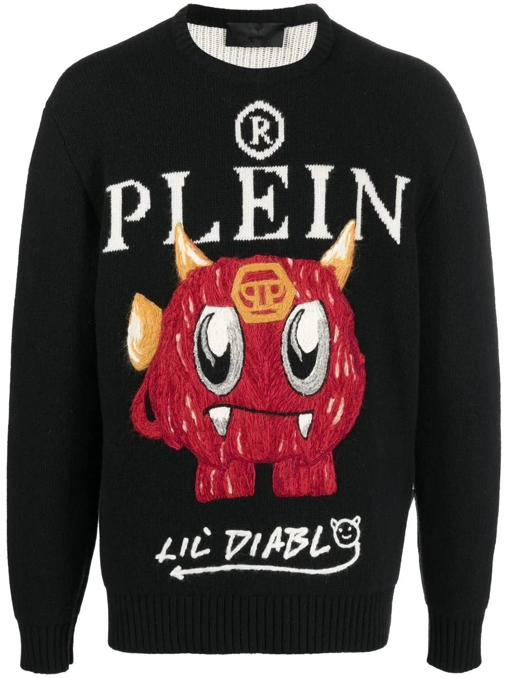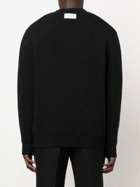 embroidered-motif crew-neck jumper jet black merino wool intarsia-knit logo embroidered motif ribbed detailing logo patch to the rear crew neck long sleeves straight hem Made in Italy Composition Lambs Wool 100% SIZE & FIT Model measurements Height 6 ft 0 in(1.84 m) Bust/Chest 35.82 in(91 cm) Hips 37 in(94 cm) Waist 28.34 in(72 cm) FittingInformation This piece fits true to size. We recommend you get your regular size Cut for a relaxed fit Made with a mid-weight fabric Washing instructions Dry Clean Only