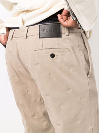 embroidered skull trousers beige cotton-blend stretch-design all-over skull embroidery logo patch to the front logo patch to the rear front button and zip fastening belt loops slip pockets to the sides rear button-fastening pocket Made in Italy Composition Outer: Cotton 98%, Spandex/Elastane 2% Lining: Cotton 100% SIZE & FIT Model measurements Height 6 ft 1 in(1.85 m) Bust/Chest 38.58 in(98 cm) Hips 37 in(94 cm) Waist 30.31 in(77 cm) FittingInformation This piece fits true to size. We recommend you get your regular size Cut for a slim fit Made with a mid-weight stretch fabric Washing instructions Dry Clean Only