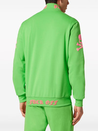 embroidered bomber jacket Highlights - Bright green - Cotton blend - Jersey texture - Embroidered edge - Skull print - Logo patch at the chest - Mock neck - Front zip fastening - Long sleeves - Fitted-cuff sleeves - Straight hem Imported Composition Outer: Cotton 54%, Polyester 42%, Elastane 4% Washing instructions Read Manufacturer Guidelines