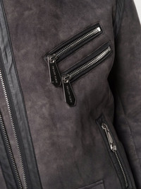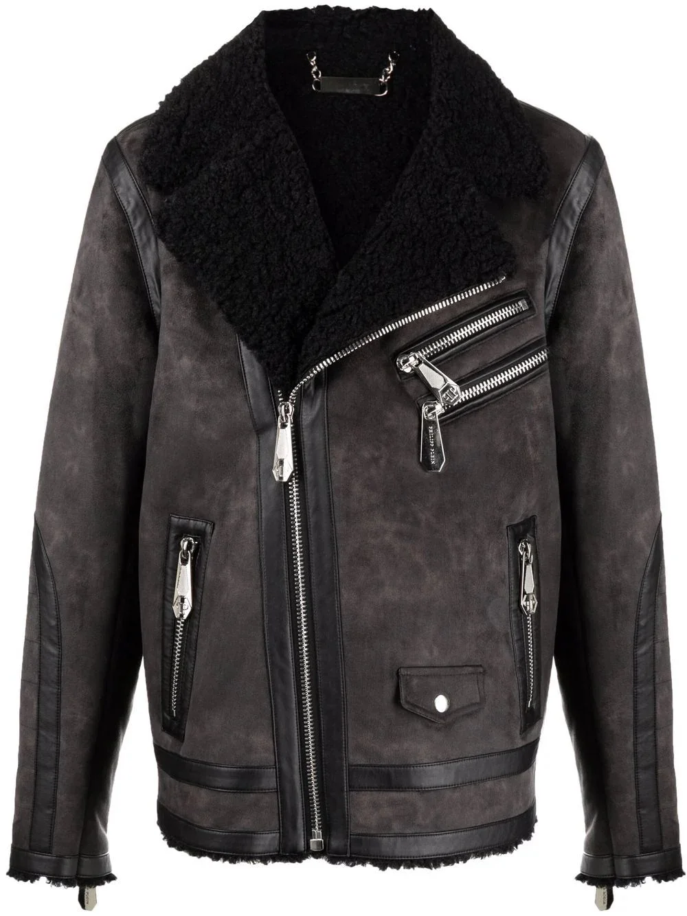 Iconic Plein suede biker jacket black suede faux shearling notched collar off-centre front zip fastening front zip fastening pockets button-fastening pocket long sleeves cuff zips Imported Composition Polyester 100% SIZE & FIT Model measurements Height 6 ft 1 in(1.85 m) Bust/Chest 38.58 in(98 cm) Hips 37 in(94 cm) Waist 30.31 in(77 cm) FittingInformation This piece fits true to size. We recommend you get your regular size Cut for a loose fit Made with a mid-weight non-stretch fabric Washing instructions Specialist Cleaning
