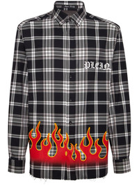 flame-print plaid cotton shirt Highlights - Black/white - Cotton - Distressed effect - Plaid check pattern - Flame print - Logo print at the chest - Logo print to the rear - Slogan print to the rear - Spread collar - Front button placket - Long sleeves - Buttoned cuffs - Raw-cut hem Made in Italy Composition Cotton 100%