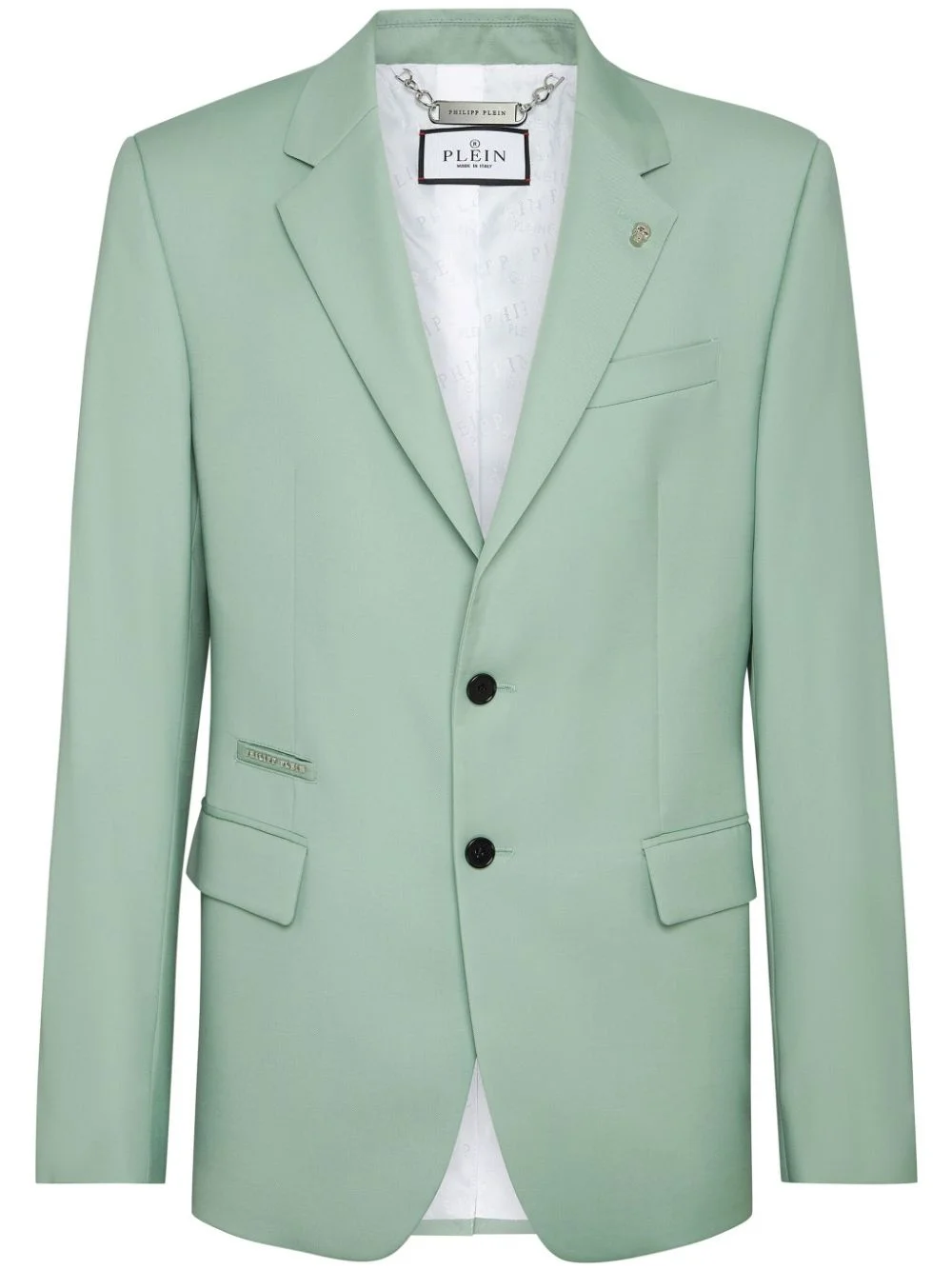 Gigolo Fit virgin wool blazer Highlights - Mint green - Virgin wool - Tonal stitching - Logo patch to the front - Notched lapels - Front button fastening - Long sleeves - Buttoned cuffs - Chest welt pocket - Two front flap pockets - Central rear vent - Straight hem Made in Italy Composition Outer: Virgin Wool 100% Washing instructions Read Manufacturer Guidelines