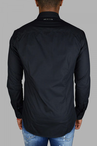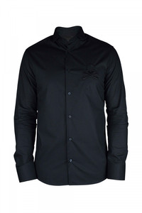 Philpp Plein shirt in black cotton poplin. 3D embroidered skull on the left chest. Mother of pearl buttons. 100% cotton. Made in Italy.