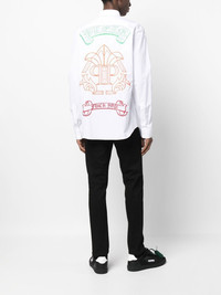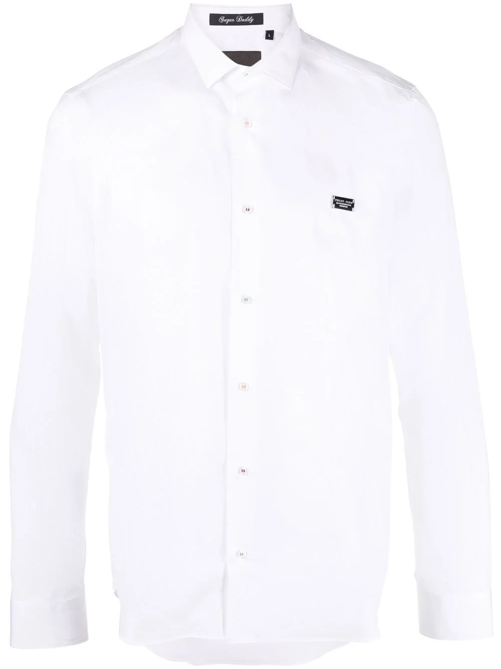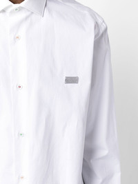 Gothic Banner long-sleeve shirt white cotton silver-tone logo plaque spread collar front button fastening long sleeves straight hem Made in Italy Composition Cotton 100% SIZE & FIT Model measurements Height 6 ft 1 in(1.85 m) Bust/Chest 31.88 in(81 cm) Hips 33.07 in(84 cm) Waist 26.77 in(68 cm) FittingInformation This piece fits true to size. We recommend you get your regular size Cut for a slim fit Made with a mid-weight non-stretch fabric Washing instructions Machine Wash
