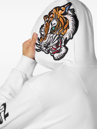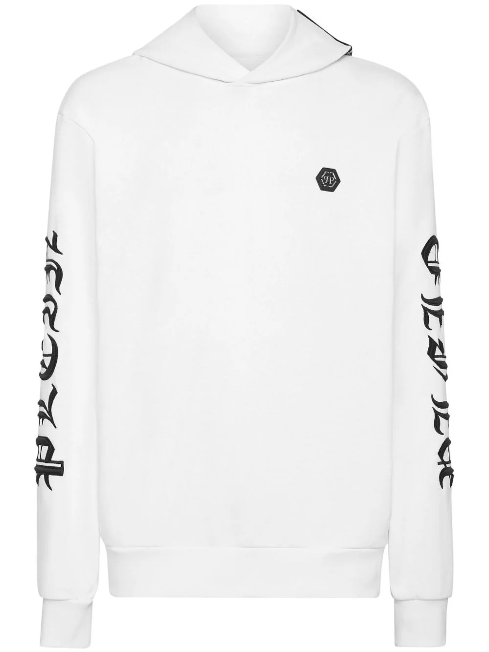Gothic Plein cotton hoodie Highlights - White/black - Cotton - Applique logo - Logo print at the sleeve - Signature tiger motif - Classic hood - Long sleeves - Two side slit pockets - Ribbed trim - Straight hem Made in Italy Composition Cotton 100%